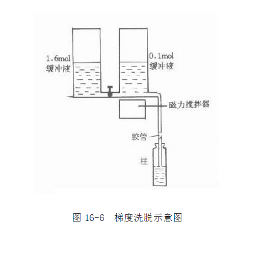 ⒊洗脫餾份的分析 按一定體積(5-10ml/管)收集的洗脫液可逐管進行測定,得到層析圖譜。依實驗目的的不同,可采用適宜的檢測方法(生物活性測定、免疫學測定等)確定圖譜中目的物的位置,并回收目的物。