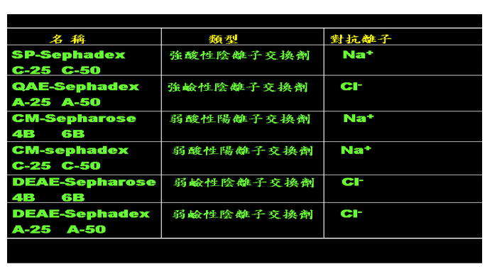 離子交換劑的選擇,shou重保持欲分離物質的生物活性,以及在不同pH值環境中,此物質所帶的電荷和電性強弱。