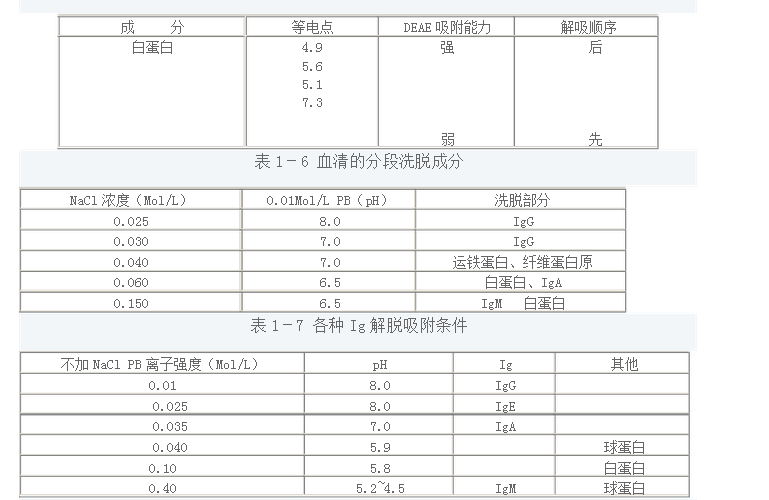表1-5 血清蛋白各成分的吸附與解吸的關系