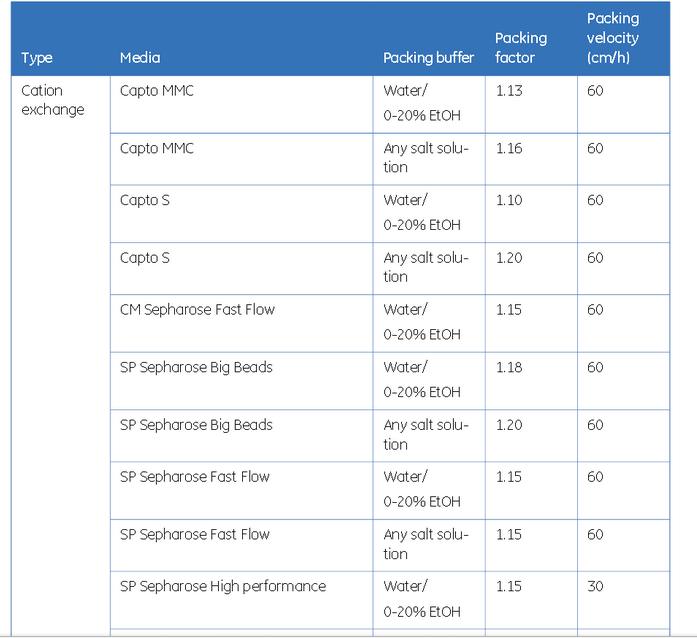 使用BPG300層析柱進行放大的工藝參數: 裝柱體積V柱= S柱h=3.14×1.52×1L=7L; 裝柱需要slurry體積Vslurry=V柱×PF/Cslurry 以DEAE Sepharose Fast Flow為填料, 則,Vslurry=7×1.15/0.75L=10.73L;
