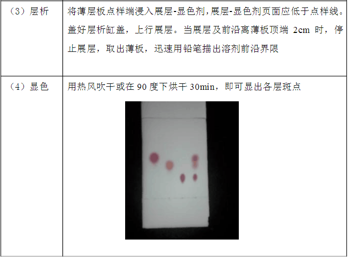 (3)展開溶劑:按80:10:10比例(V/V/V)混合正丁醇、冰醋酸及蒸餾水,臨用前配制